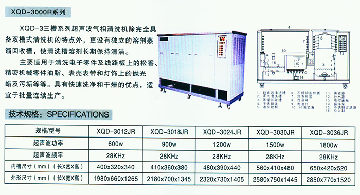 XQD-3000R三槽系列超声波气相清洗机